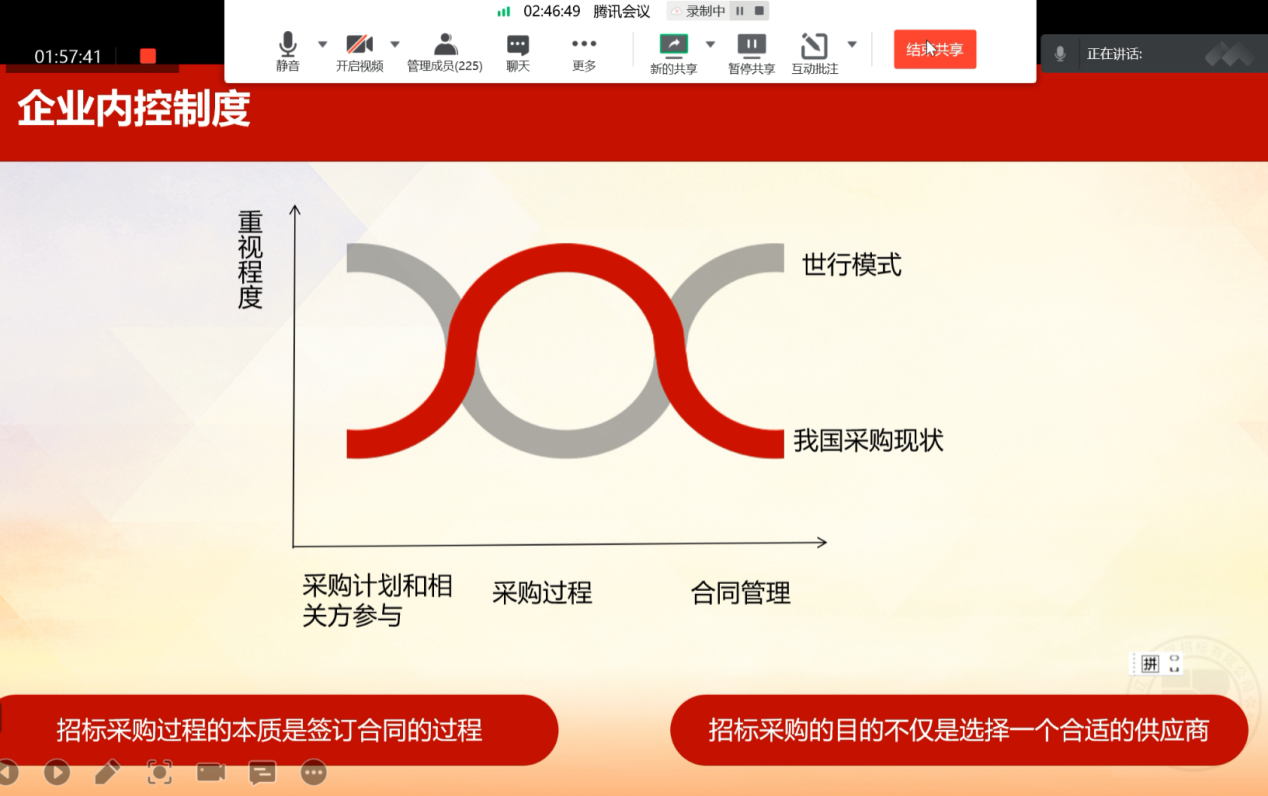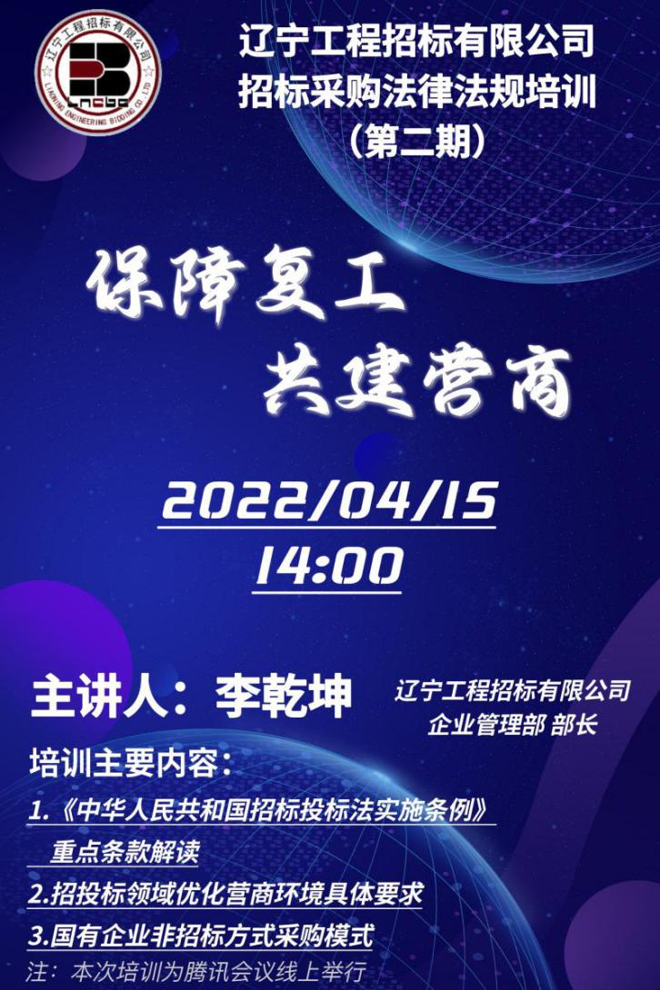 为全面贯彻中国共产党辽宁省第十三次代表大会和省纪委监委关于优化营商环境的部署,着力落实《省工程咨询集团开展营商环境监督行动工作方案》工作要求,统筹推进疫情防控与生产经营,4月15日,公司举办了第二期招标采购法律法规培训系列活动。在积极有序推进复工复产的关键时期,本次培训全过程通过线上视频会议方式进行,包括机关事业单位、央企及地方国企、金融机构、高校等近百家单位300余名代表参加培训,为保障复工复产、优化营商环境提供了有力支撑。公司总经理李刚致欢迎词,介绍了公司的发展历程与规划愿景,特别强调本轮疫情中公司秉持坚守岗位、防范到位、高效运行的工作理念,充分运用互联网+等创新手段,积极研究应对措施。多次应用公司电子招投标平台实现全流程不见面电子化招标,利用专业经验和法律顾问团队为招标人提供在线招采解决方案,组织专业技术人员在疫情期间进行了一系列的招标采购专题研究,多措并举切实保障项目实施。
