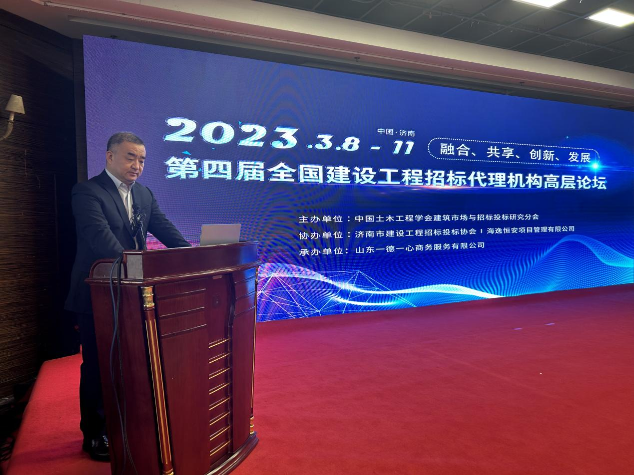 3月8日-10日,由中国土木工程学会建筑市场与招标投标研究分会主办的“七届四次理事会扩大会议暨第四届全国建设工程招标代理机构高层论坛”在山东省济南市隆重召开,来自全国多个省市的行业协会、代理机构齐聚济南,共襄盛会。住建部建筑市场监管司三级调研员张娟对会议的召开表示热烈祝贺,中国土木工程学会副理事长尚春明到会致辞,山东省济南市住建局副局长王冠一发表讲话。公司作为常务理事单位应邀参会。